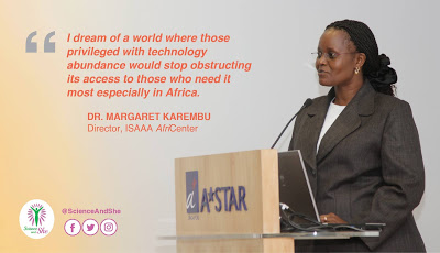 In a video, Dr. Karembu narrates the story of millions of African women struggling daily to bring food on the table and how African researchers are working hard to also deliver products of biotechnology. “I am very proud to be helping them improve on how they deliver their messages about their research reaching out to policymakers so that we can have enabling policies that will bring technologies that will be useful for African women,” she said. Watch the entire video on Science and She's Facebook Page.